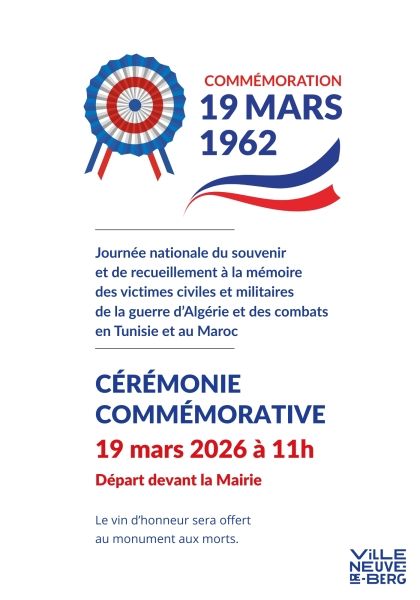 À l’occasion de la Journée nationale du souvenir et de recueillement à la mémoire des victimes civiles et militaires de la guerre d’Algérie et des combats en Tunisie et au Maroc, la Ville de Villeneuve-de-Berg vous invite à un moment de mémoire et de partage.