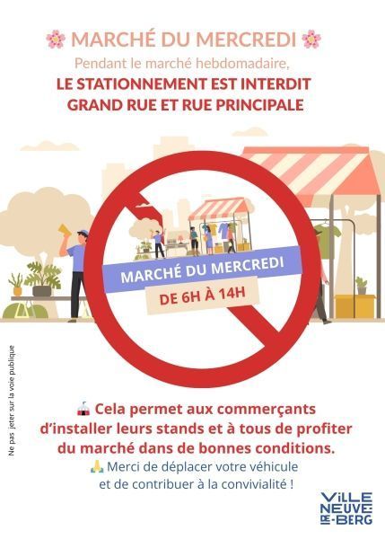 Pendant le marché hebdomadaire, le stationnement est interdit sur la Grand Rue et la Rue Principale.