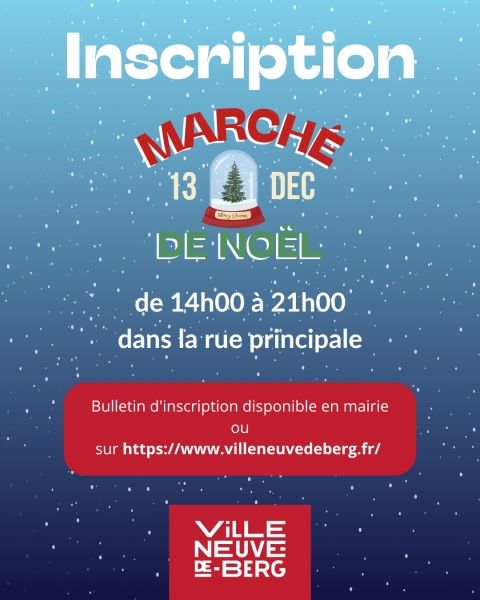 Nous avons le plaisir de vous annoncer que le marché et vide-grenier de Noël de Villeneuve de Berg (07) aura lieu le samedi 13 décembre 2025 de 14h00 à 21h00 dans la rue principale.