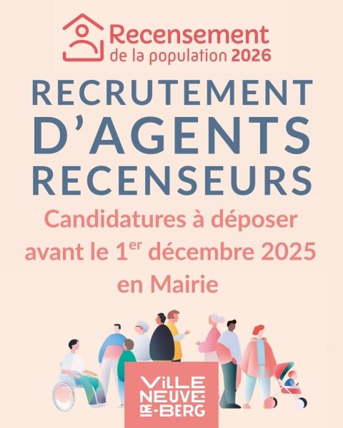 Du 15 janvier au 14 février 2026, Villeneuve de Berg est concernée par le recensement général de la population des communes de moins de 10 000 habitants.