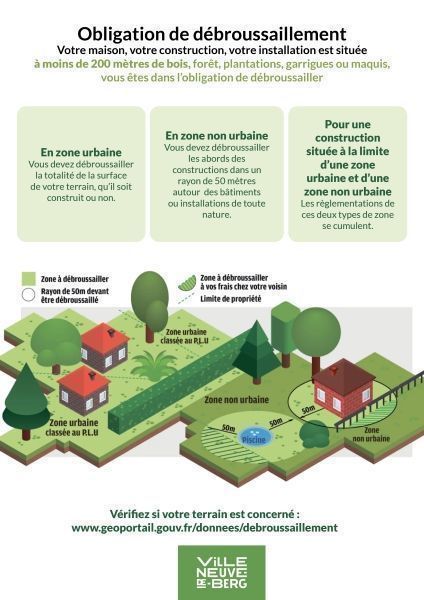 - En zone non urbaine : vous devez débroussailler les abords des constructions dans un rayon de 50 mètres autour des bâtiments ou installations de toute nature.