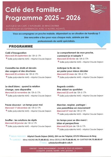 L’hôpital Claude Dejean organise des temps de rencontres et d'échanges pour les aidants familiaux sur différentes thématiques.